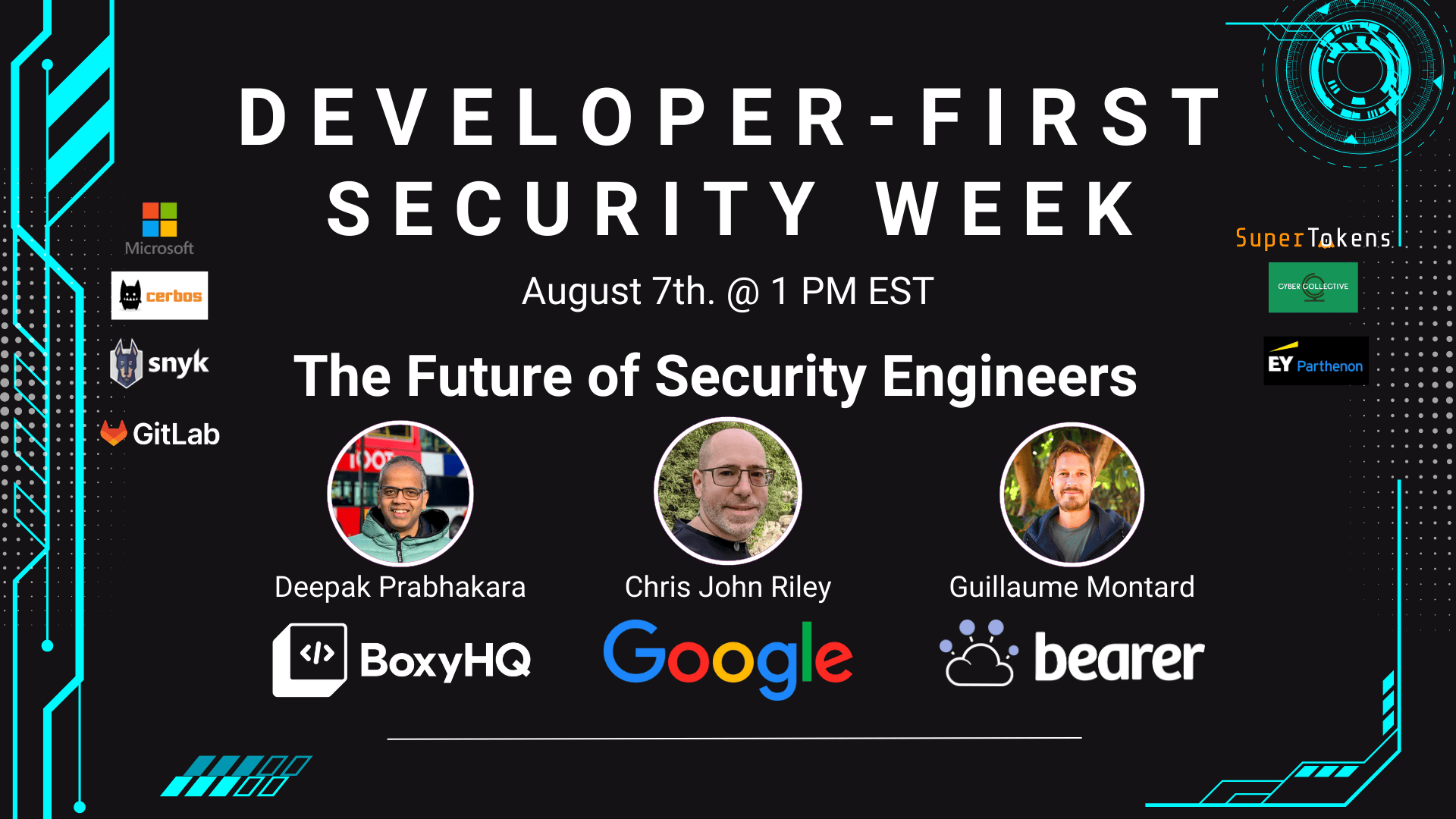 This event is designed to be completely free and virtual, allowing us to reach and support as many developers and organizations as possible, ensuring that the knowledge and best practices for developer-first security are accessible to all.